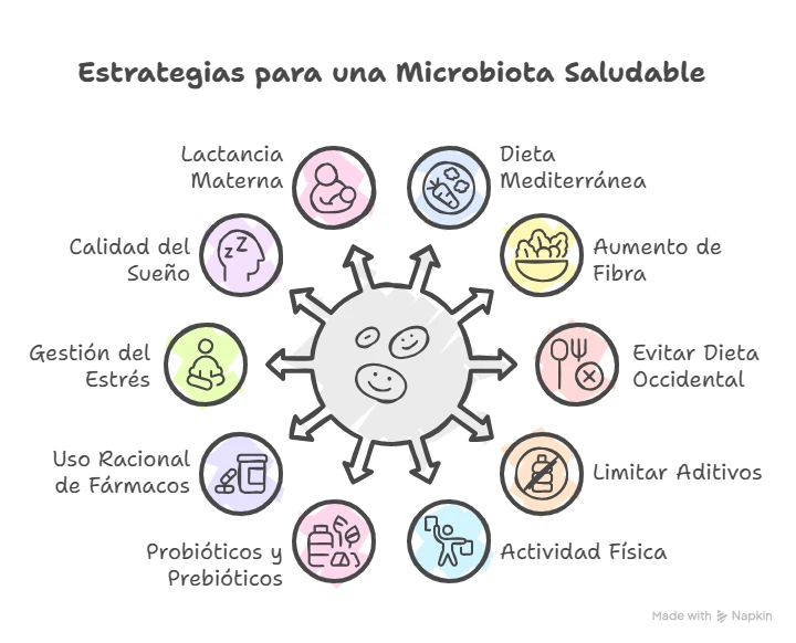 Adoptar un estilo de vida saludable, donde la dieta, actividad física y el descanso adecuado así como evitar el uso indiscriminado de antibióticos, algunos fármacos y complementando con el uso apropiado de bióticos en ciertas condiciones clínicas son los mejores aliados para tener una microbiota equilibrada y funcional.